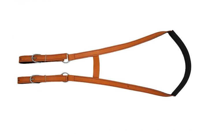 Часть конной упряжи; ремень, идущий от седла под репицу лошади, для удержания седла на месте, при спуске под гору. Изделие изготовлено из цветной шорно - седельной кожи и прочной капроновой стропы 25мм, прошито капроновой нитью. Общая длина изделия 2 м; длина язычка от пряжки 38 см. Под хвостом мягкая вставка из войлока, обшитого тонкой кожей. Полукруглые пряжки и кольца сварные.