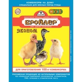 Витаминно-минеральная добавка в виде премикса обеспечивает рацион цыплят – бройлеров необходимыми минеральными солями и витаминами, которая сокращает падеж птицы за время откорма в 2 раза; сокращает период откорма на 1 неделю; профилактирует рахит и другие болезни связанные с нарушением обмена веществ. Состав: Микроэлементы: железо, медь, цинк, марганец, кобальт, йод, селен; Витамины: А, D3, Е, К, В1, В2, В3, В4, В5, В6, В12, Вс, С; Антиоксиданты, наполнитель.