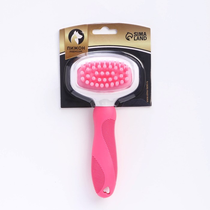 Щётка шерсти с удлиненными силиконовыми зубцами и массажным эффектом 8х17 розовая 7437996