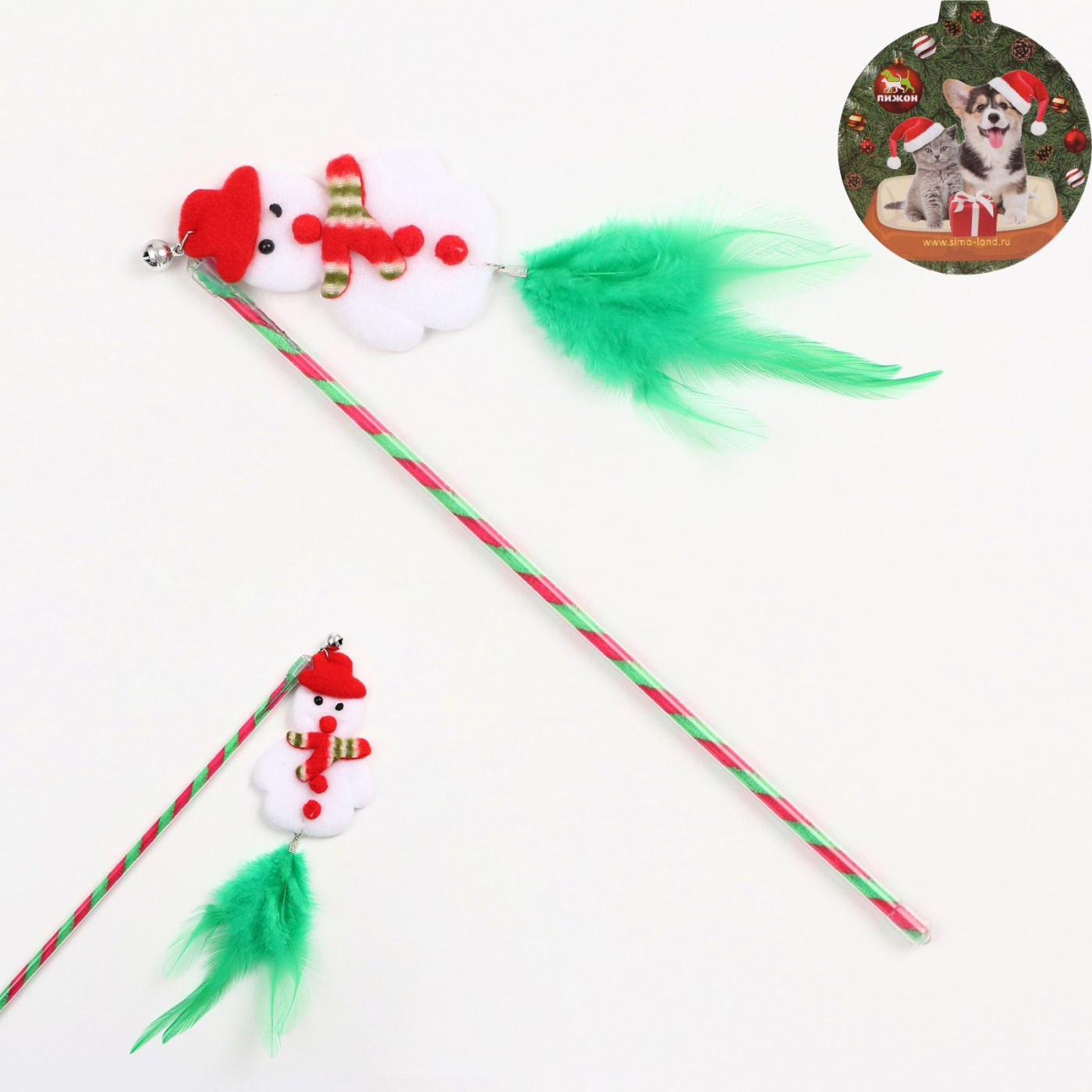 Дразнилка для кошек с бубенчиком "Новогодний снеговик" 30см