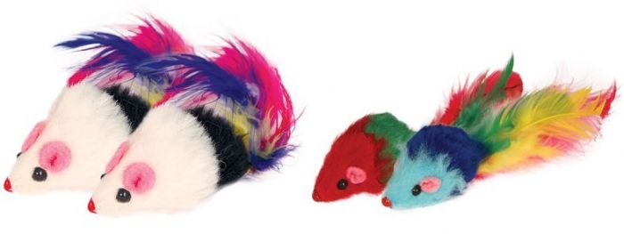 Игрушка для кошек Мышь 5см малая погремушка с перьями SHO3,04