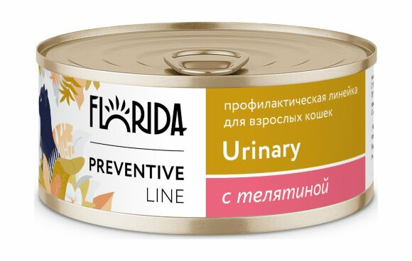 Мясные консервы Florida Preventive Line Urinary – полнорационный диетический профилактический корм, который предназначен для поддержания здоровья мочевыделительной системы и профилактики образования струвитных уролитов.