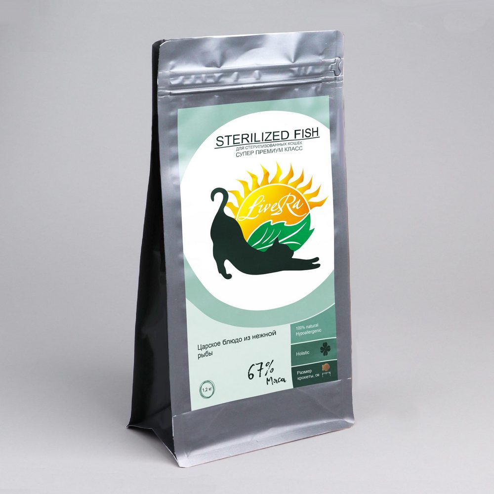 LiveRa STERILIZED FISH (царское блюдо из нежной рыбы) 67% мяса — легкоусваиваемый полноценный рацион профессионального питания для стерилизованных кошек со вкусом рыбы.