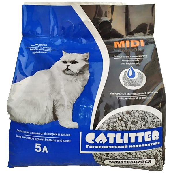 Catlitter carbon MIDI комкующийся наполнитель 5л