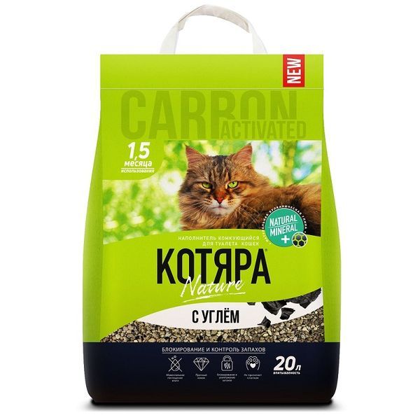 - Наполнитель для кошачьего туалета "Pi-Pi-Bent", "Котяра", комкующийся ,с активированным углем, 20л,8.4 кг