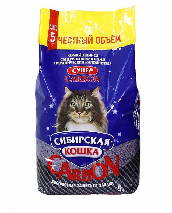 Сибирская Кошка Супер комкующийся наполнитель CARBON 5л