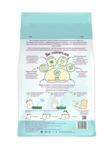 - Растительный наполнитель Toshiko (Тошико) изготавливается из органических волокон хвойных пород деревьев и создан на основе инновационного комплекса 5E, позволяющего Вам проявлять заботу о питомце с легкостью.