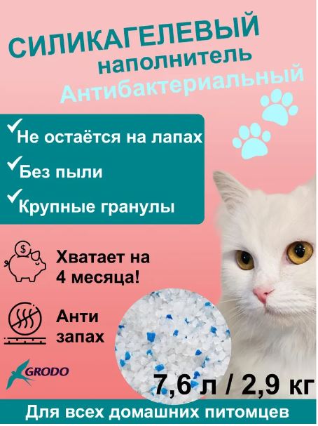- Антибактериальный силикагелевый наполнитель для кошачьего туалета.