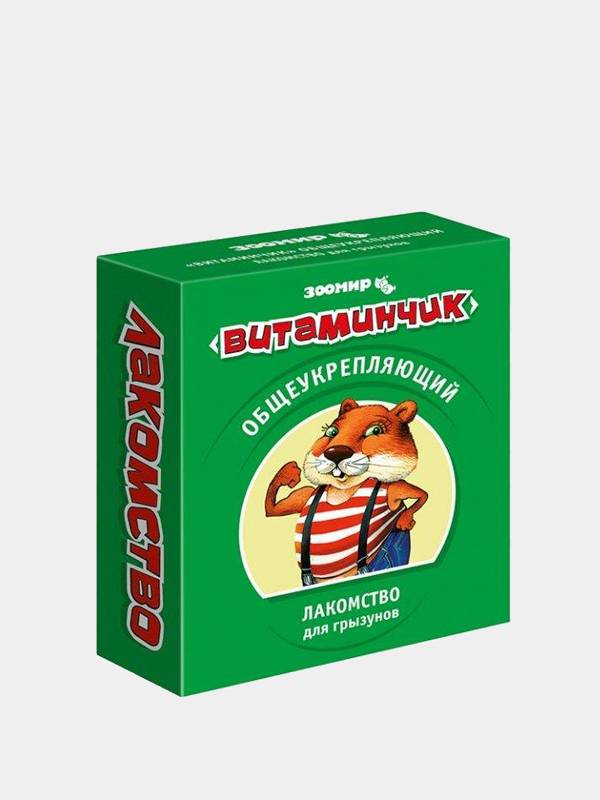 Лакомство для мелких декоративных грызунов (хомяков, крыс, мышей, песчанок), доставляющее им вкусовое наслаждение и способствующее общему укреплению организма. Благодаря входящим в состав лакомым и полезным компонентам: природному витаминному комплексу из лесных ягод, натуральным фруктовым компонентам, являющимся кладезем различных микро- и макроэлементов, сушеным рачкам гаммаруса, а также раковинам моллюсков (источник биогенного кальция) Ваш зверек получит не только привлекательное лакомство, но и полезное дополнение к питанию.Состав