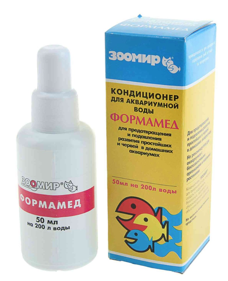 Для аквариумов Формамед 50 мл для профилактики от торговой марки ЗООМИР препятствует развитию различных видов червей и полипов. Изготавливается из натуральных компонентов, которые создают благоприятные условия для обитания декоративных рыб в пресной воде. Кондиционер можно использовать без пересадки водных обитателей. Средство полностью безопасно в применении.