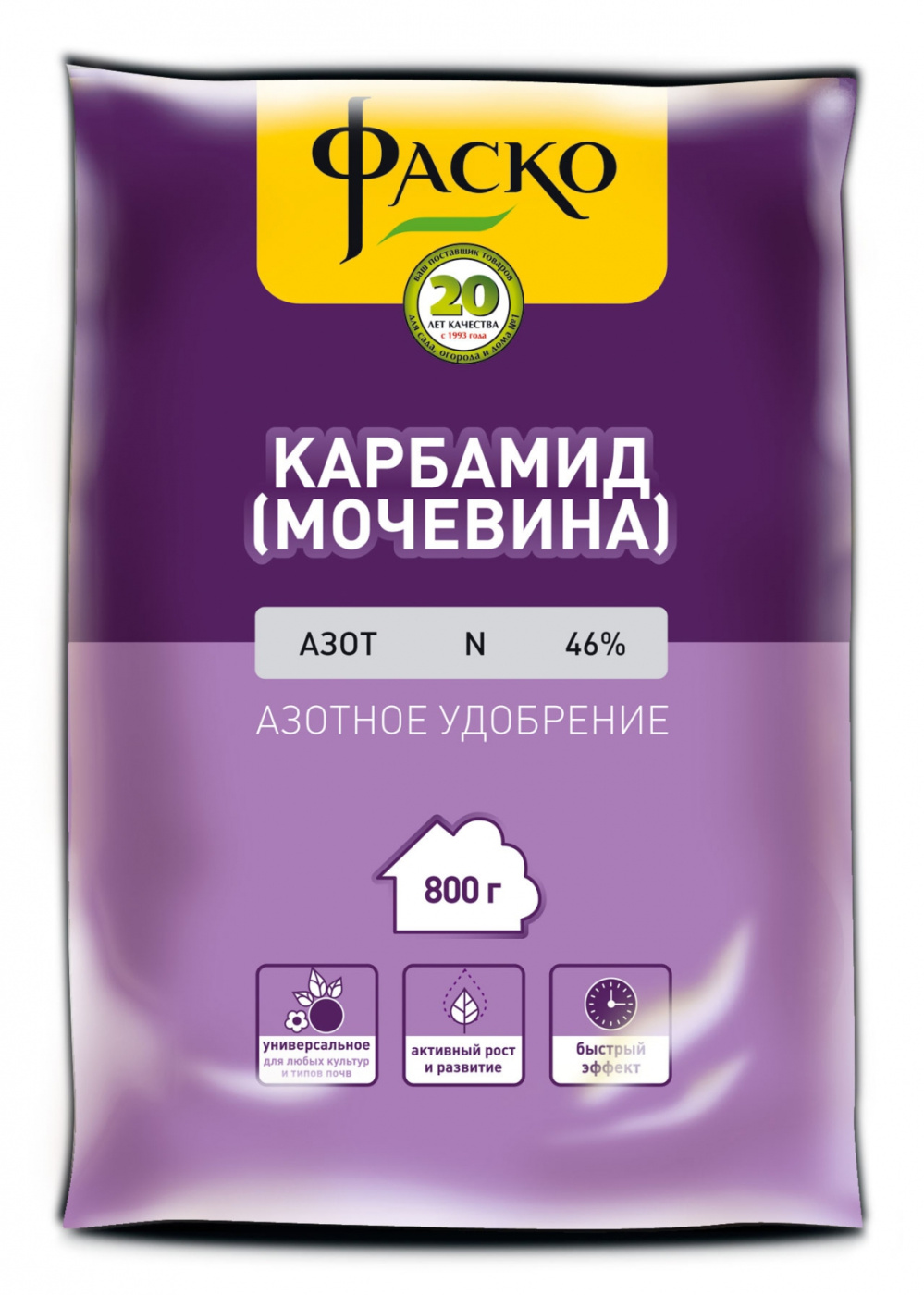 Высокоэффективное, растворимое в воде, азотное удобрение используется для основного и предпосевного внесения под культуры. Для более сбалансированного питания растений рекомендуем вносить совместно с фосфорными и калийными удобрениями. Применяется: - Для удобрения садовых, огородных культур; - Для основного внесения (под весеннюю перекопку почвы) - При посадке деревьев и кустарников; - Для всех типов почв; - При высадке рассады в открытый грунт. Преимущества: - Универсальное удобрение; - Обеспечивает активный рост и развитие зеленой массы; - Быстрый эффект.