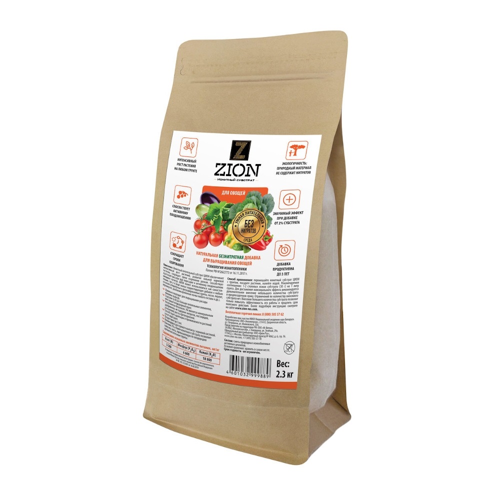Ионитный питательный субстрат ЦИОН (ZION) "Для овощей" обеспечивает интенсивный рост растений, развитие сильной корневой системы, сокращает сроки созревания урожая.