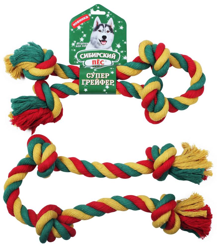 Игрушка для собак Сибирский Пёс Грейфер цветная верёвка 4 узла D30/800мм