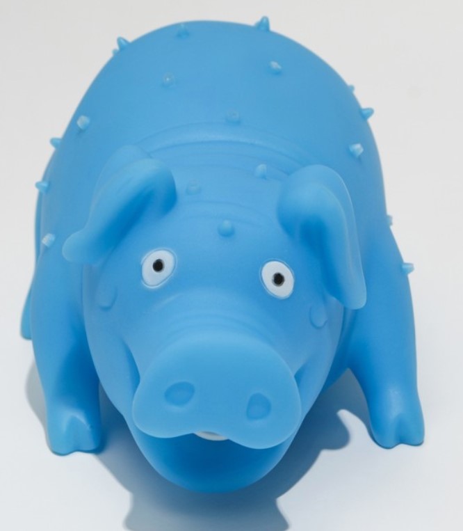 Игрушка для собак пищащая Веселая свинья хрюкающий светящийся 19см голубоая 7121460