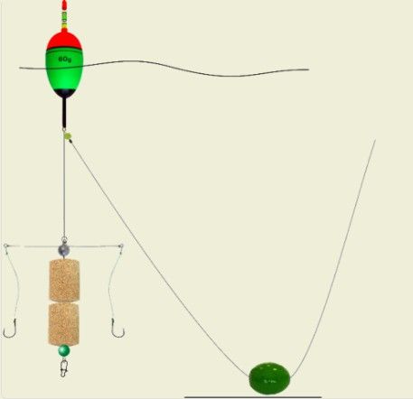 Снасть на толстолобика №15 EVA поплавок 60гр Т-образная для двух таблеток 2 крючка 40гр