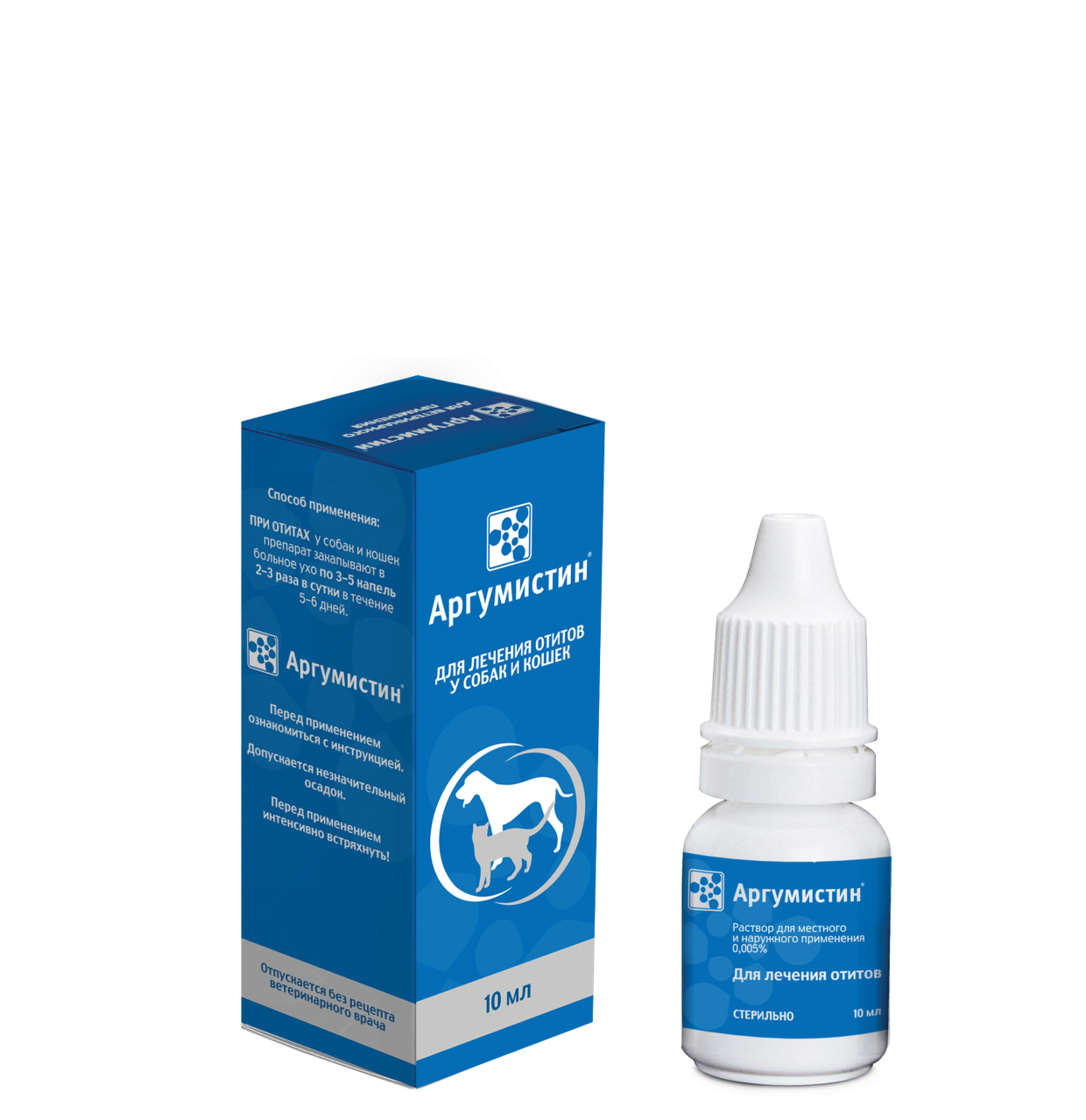 Аргумистин для кошек и собак капли ушные 0,005% 10мл