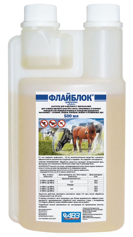 - Применяют для защиты крупного рогатого скота, спортивных и гужевых лошадей в пастбищный период от нападения двукрылых насекомых - слепней, оводов, комаров, мошек и зоофильных мух.