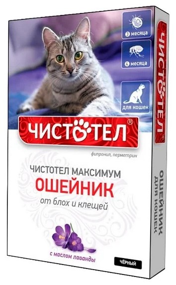 Чистотел Максимум для кошек ошейник от блох 40см черный