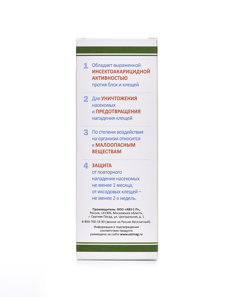 - Защита от насекомых 1 месяц, от клещей 2 недели.