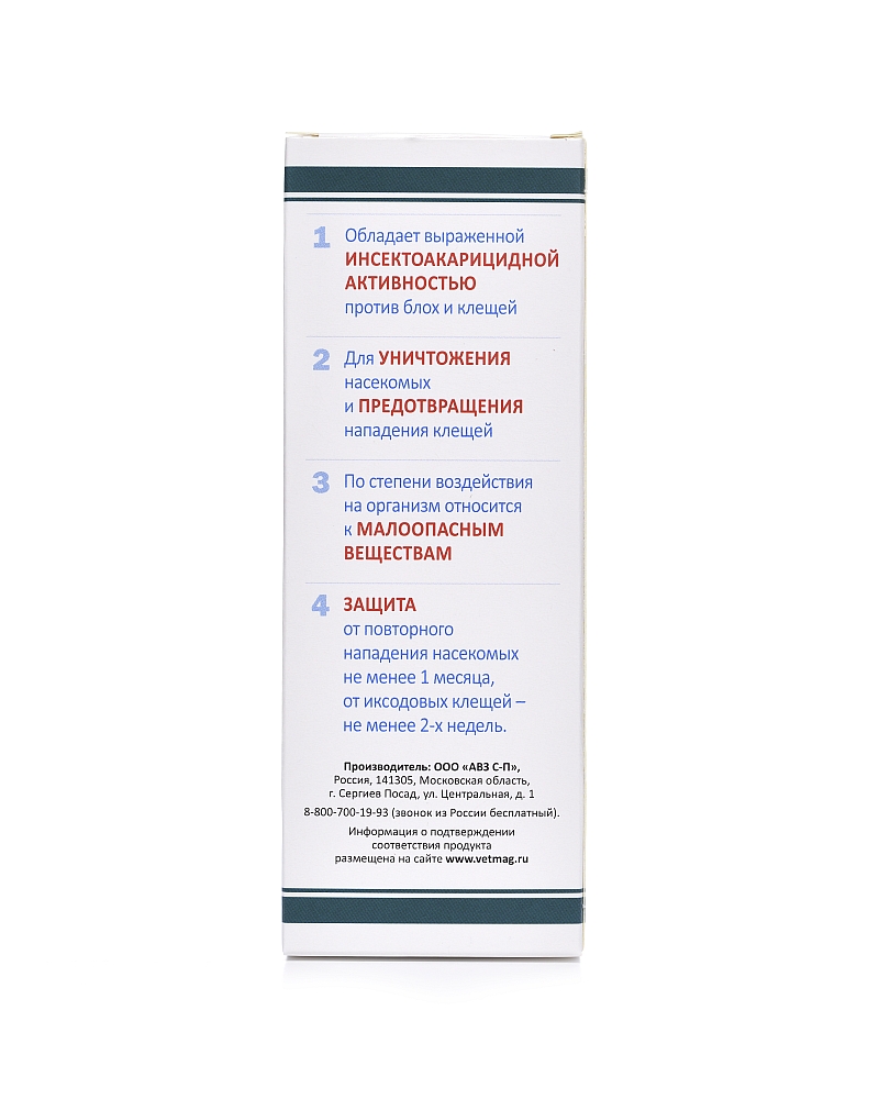 - Идеально подходит для инсектоакарицидной обработки, как самого животного, так и мест его обитания.